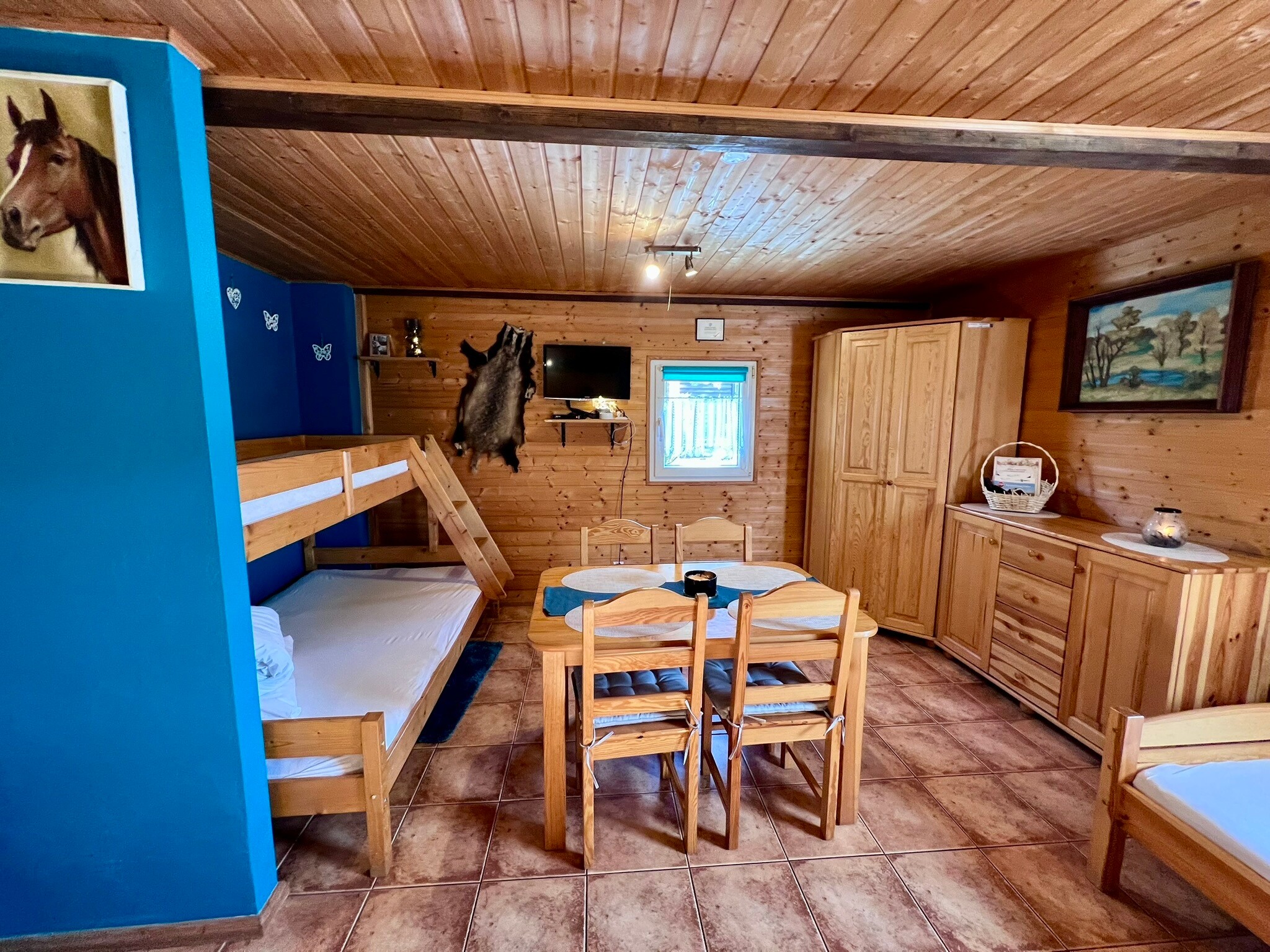 Na terenie naszego gospodarstwa znajdują się poza domem właścicieli, zaledwie trzy domki zapewniając pełen komfort i prywatność.