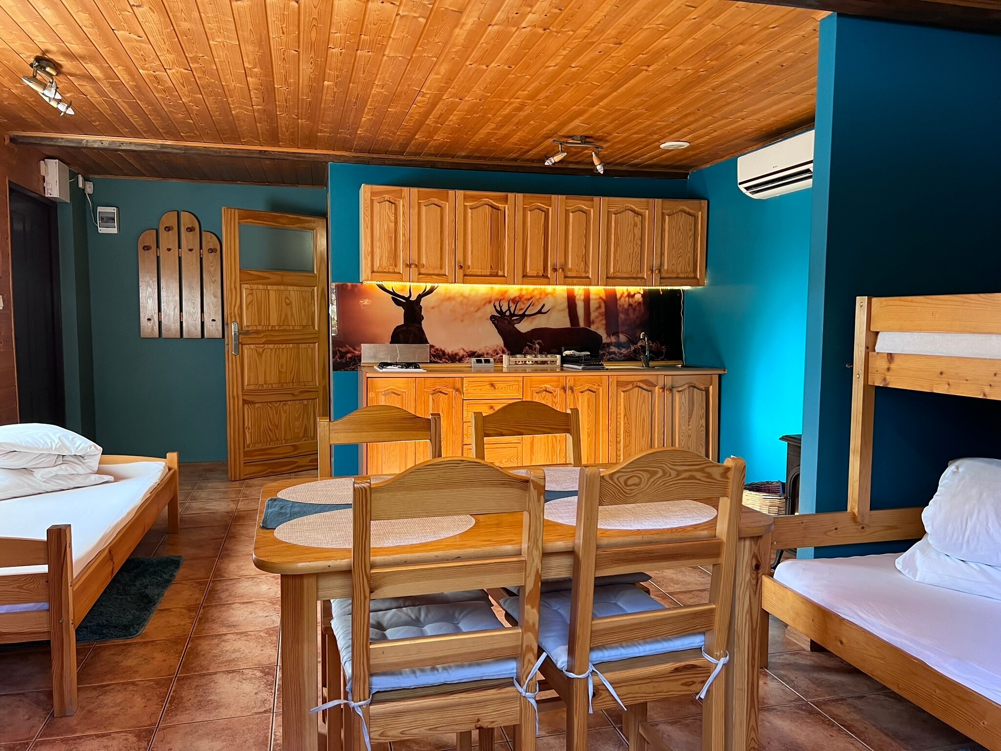 Dzięki klimatyzacji pobyt w domku jest komfortowy niezależnie od pory roku czy pogody.